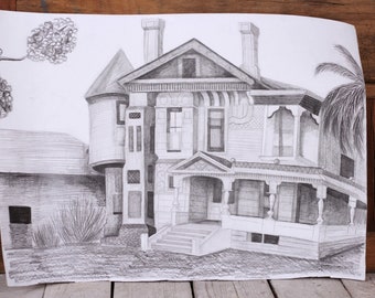 Hand Drawn Picture Big House Pencil Drawing Hand Painted Etsy Sweden